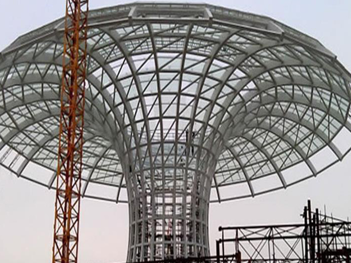 二、球形网架结构因其结构新颖,受力合理,自重轻、用钢量低等优点。如大型体育场馆球形湖北螺栓球网架、公共场馆球形网架、电厂湖北螺栓球网架、水泥工业球形网架、仓储物流球形网架、湖北干煤棚工业球形网架、湖北收费站湖北加油站球形网架、展览中心、影剧院、商场、航站楼、候车厅、工厂湖北车间、仓库、电视塔等球形螺栓球节点网架。国内球形网架结构主要分为:湖北焊接球节点网架及螺栓球节点网架两种。螺栓球节点网架其构件工厂内加工量较大,现场安装便捷,适用于现场工期紧,湖北施工条件、用电量受制约,网架形状复杂、湖北杆件定位困难的异形结构。螺栓球节点球形网架系统基本由湖北杆件、螺栓球、支撑支座等组成。按照节点形式可分为交叉湖北桁架体系、四角锥体系、三角锥体系等。支撑方式多为固定支座支撑。对于大面积、大跨度及有特殊受力或伸缩要求的网架结构可采用橡胶支座、滑移支座、球铰支座等支撑形式,以满足结构自身的受力稳定、均衡,便于内力释放等设计要求。